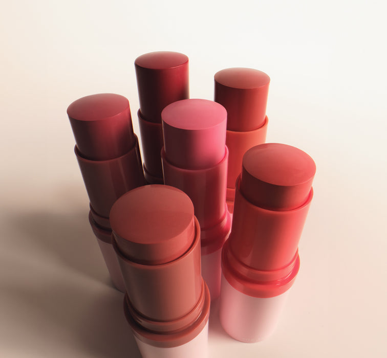 swipe the powder blush stick on cheeks and blend with your fingers, beauty sponge, or brush for a soft-matte finish.
