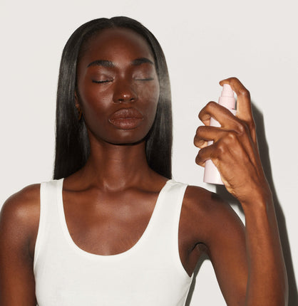 it delivers an ultra-thin mist that diffuses across the face without disturbing makeup.